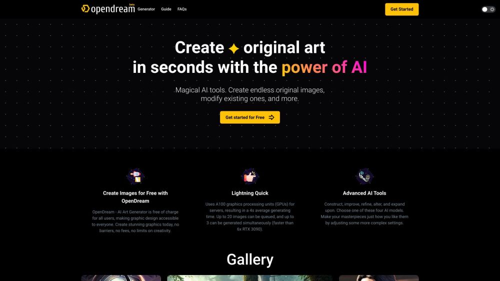 Create stunning AI-generated artwork in seconds with OpenDream and unleash your creativity.