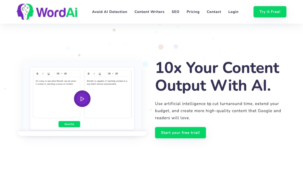 WordAi is an AI-powered text rewriter that improves content by restructuring sentences and enriching text.