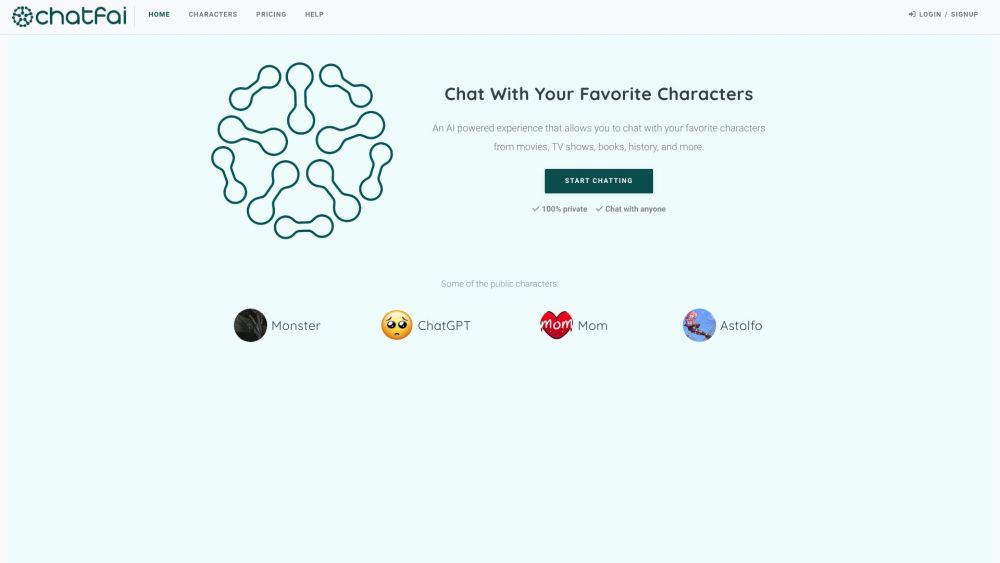ChatFAI is an interactive website where users can chat with fictional characters.