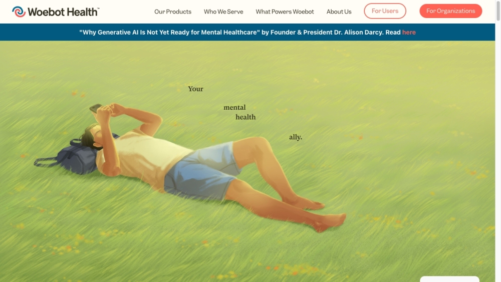 Woebot is an AI-powered mental health ally that offers evidence-based solutions for individuals.
