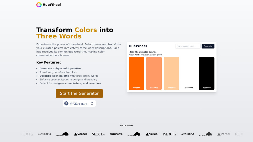 ColorpaletteAI is an AI-powered web app that creates beautiful color palettes from website descriptions.