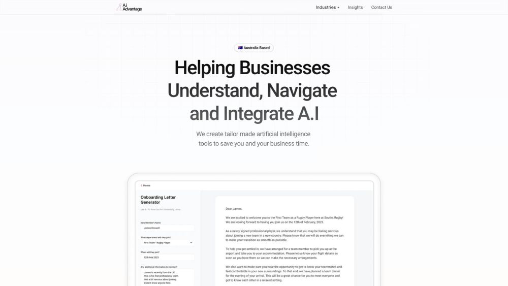 AI Advantage is an Australian consulting firm that provides tailor-made AI solutions for businesses.