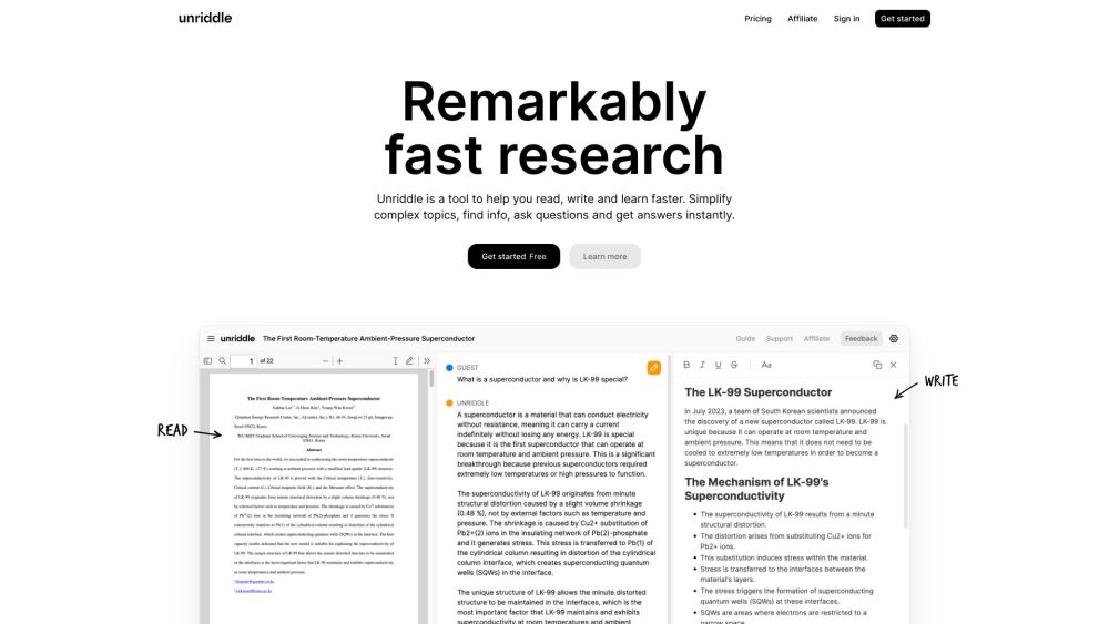 Unriddle simplifies complex documents, aiding reading, writing, and learning for faster comprehension.