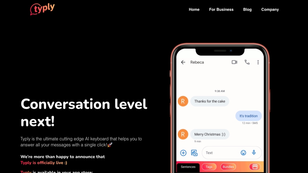 Typly is an AI keyboard that suggests automated sentences for quick and effortless messaging.