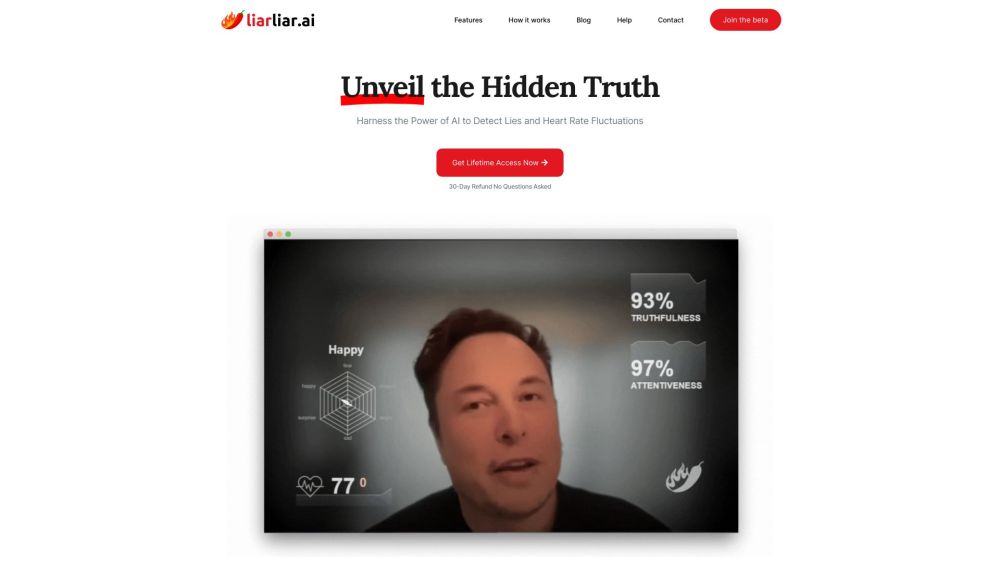 "LiarLiar.ai is an advanced AI tool that detects lies and heart rate changes during video calls."