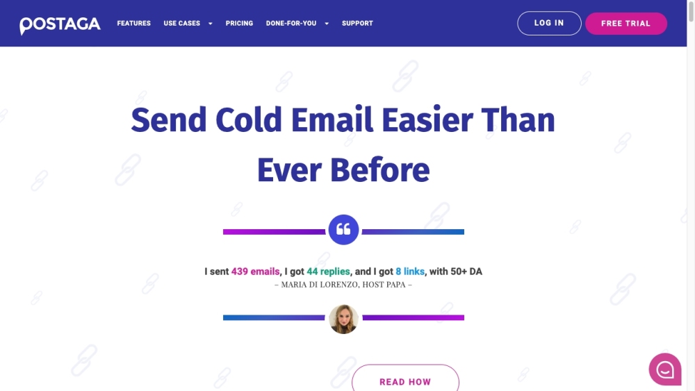 Postaga helps users generate leads, build relationships, and acquire backlinks through cold email outreach.