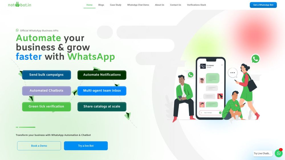 NotBot is a complete WhatsApp automation platform for businesses to automate tasks and engage customers.