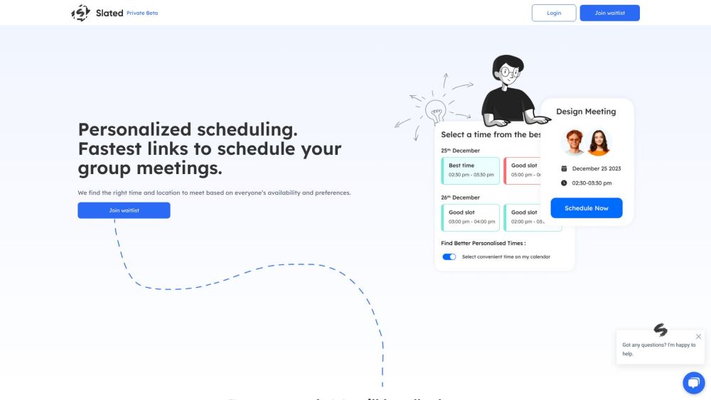 Slated is a tool for organizing group meetings, based on participant availability and preferences.