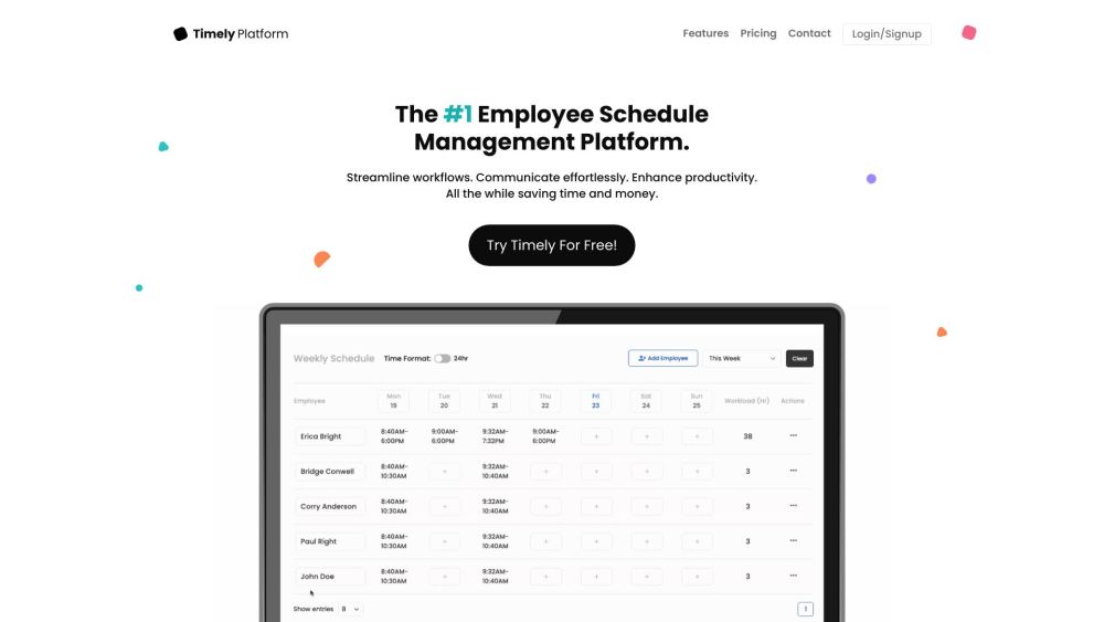 Timely is a platform that simplifies employee schedule management for businesses, improving productivity and efficiency.