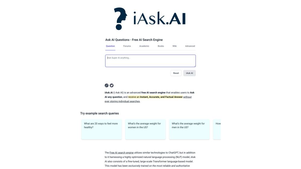 iAsk.Ai is a free AI search engine that provides instant and accurate answers without storing user data.