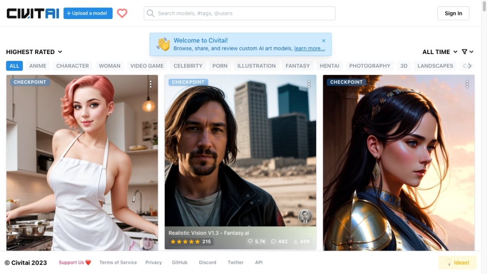 A platform for Stable Diffusion AI Art models with a large collection and active community.
