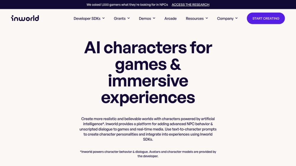 Inworld is an AI engine that creates immersive in-game characters with lifelike behavior.