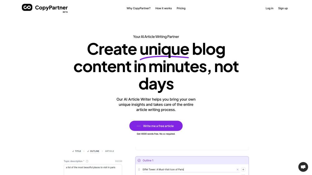 AI-powered article writer that utilizes your research and aids in creating unique, 6000-word drafts in minutes.