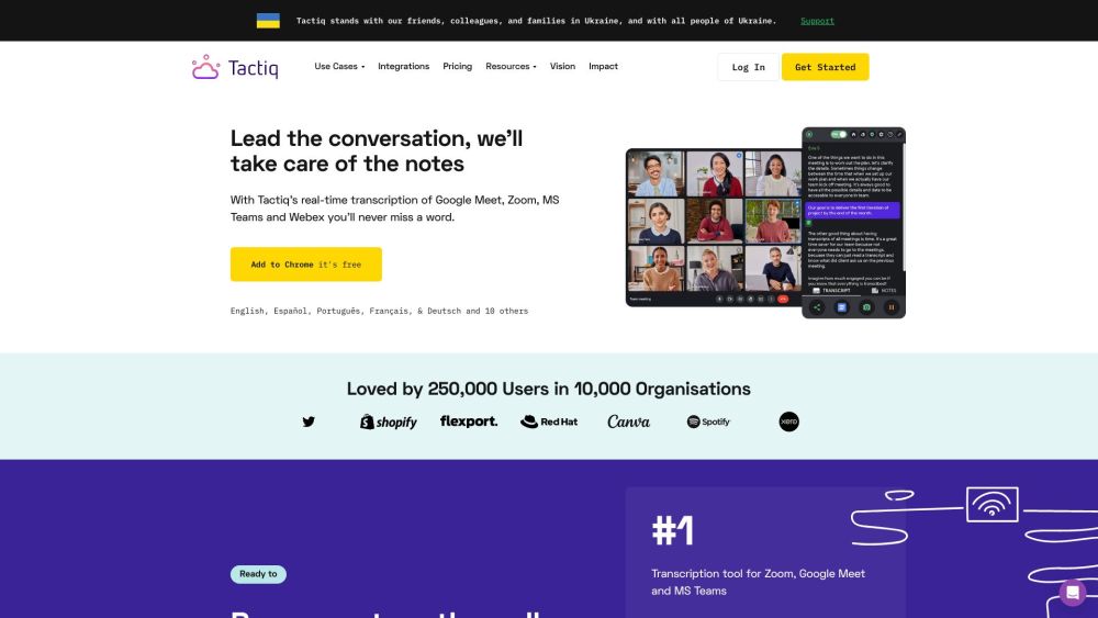 Tactiq is a top transcription tool for online meetings, offering real-time transcription and meeting summaries.