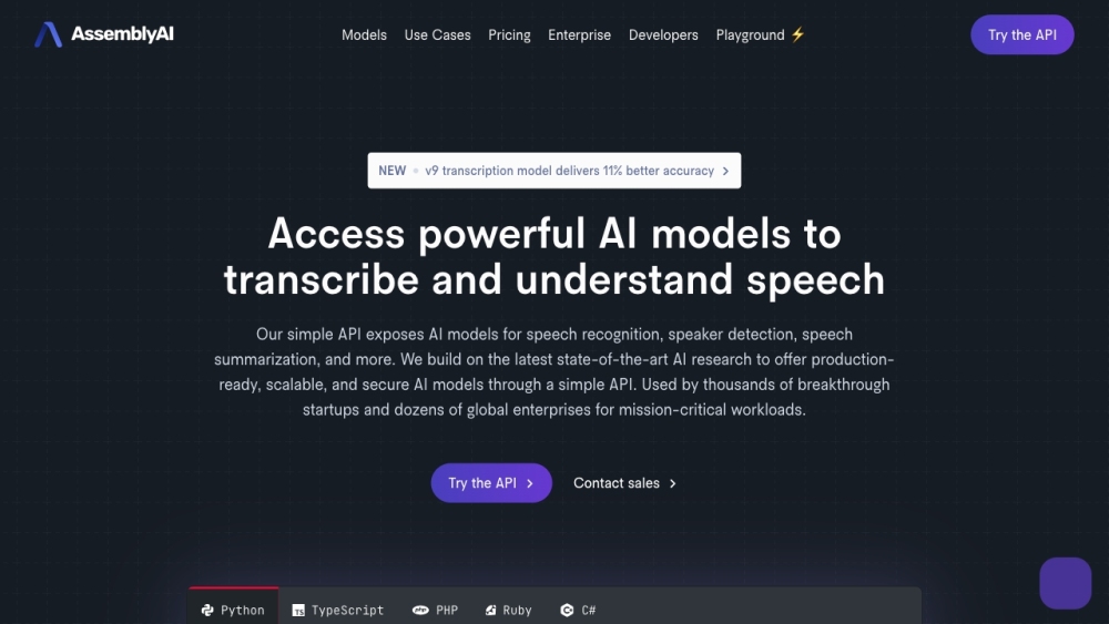 AssemblyAI provides AI models for transcribing and understanding speech through a user-friendly API.