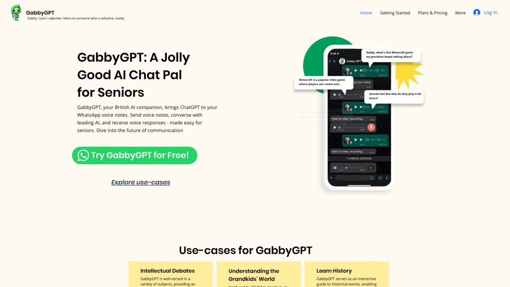 GabbyGPT is an AI voice assistant for WhatsApp, enabling seniors to send voice notes and chat with an AI companion.