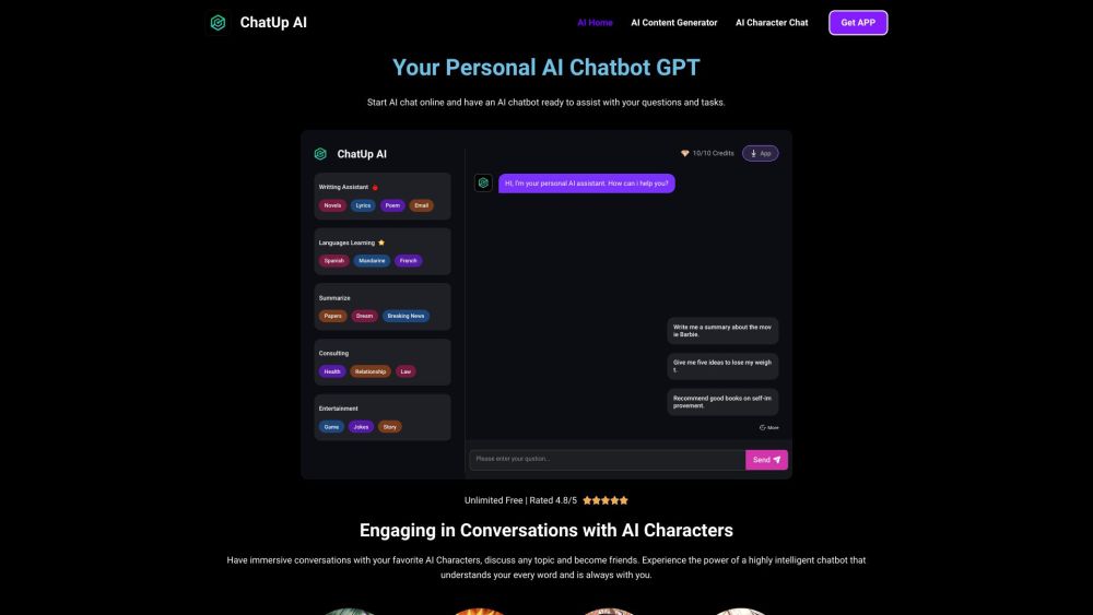 Start AI chat online with your Personal AI Chatbot GPT and engage in conversations with AI Characters.