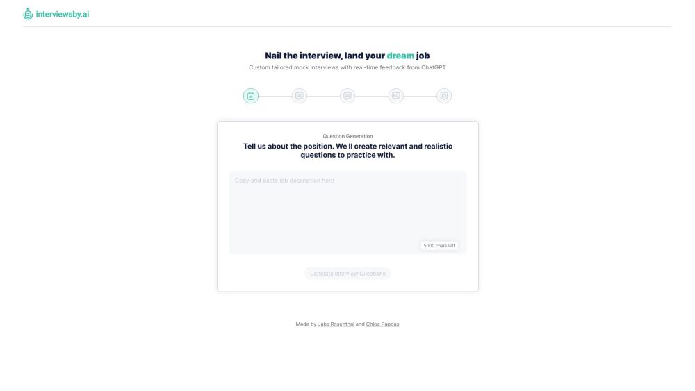 "Interviewsby.ai provides personalized mock interviews with real-time feedback from ChatGPT."
