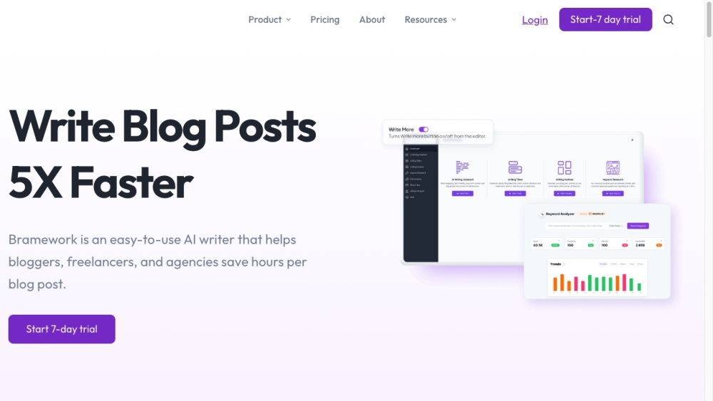 Bramework is an AI writer that assists bloggers in turning their hobby into a career.
