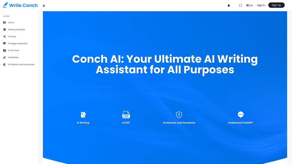 1. Store your work in Conch's file management system 2. Humanize your essay by using your own writing style 3. Ask Conch for instant answers 4. Let Conch generate the next sentence for you 5. Improve your writing skills with Conch