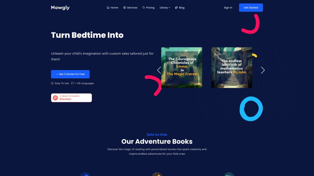 Storybooks is a website that offers illustrated bedtime stories to instill a love for reading and strengthen the bond with your little one. It allows you to create personalized stories for children, sparking creativity and building important life skills.