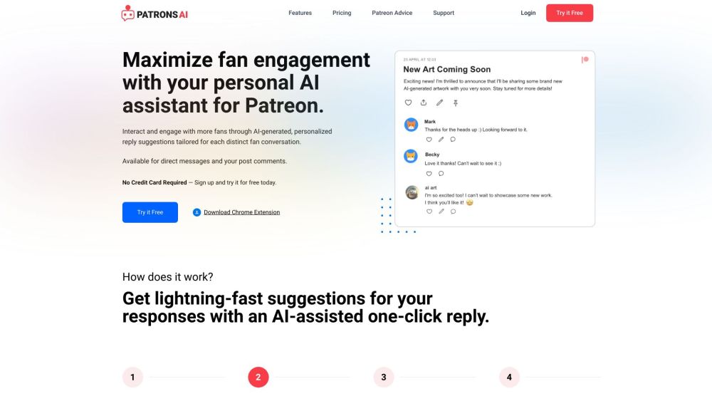 Patreon users can enhance interaction with patrons using patronsAI's personalized reply suggestions.