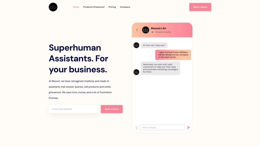 Blozum is an AI assistant that helps businesses with customer interactions throughout the sales process.