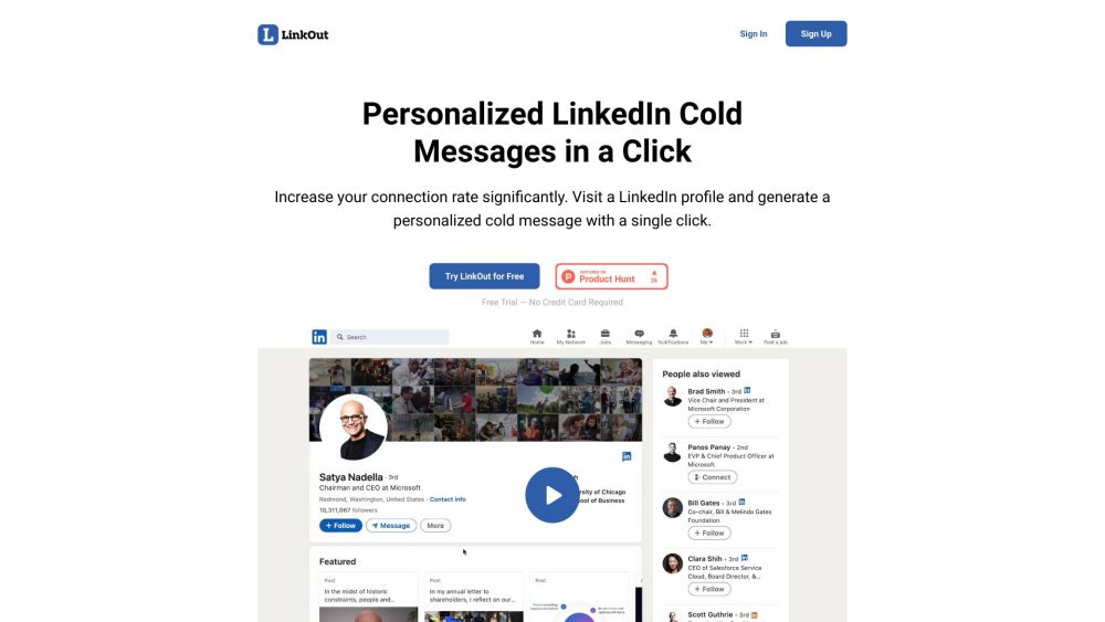 "LinkOut simplifies LinkedIn cold messaging, improving connection rates through personalized messages."