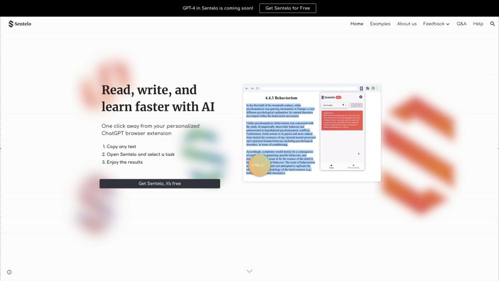 Sentelo: a browser extension using Google and OpenAI's tech for faster reading, writing, and learning.