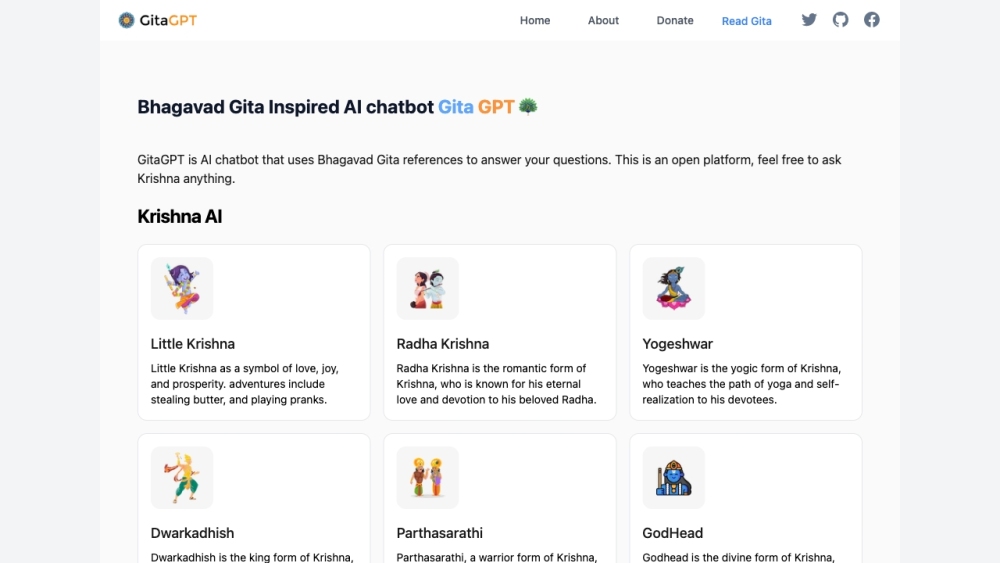 AI chatbot Gita GPT is a personal guide to the Bhagavad Gita, offering spiritual guidance and answering questions.