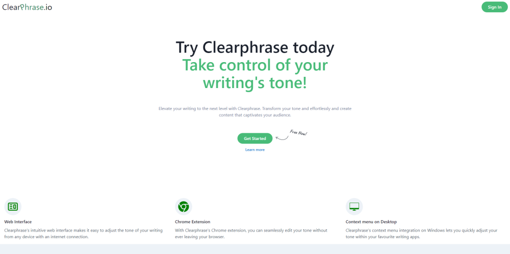 ClearPhrase helps users control the tone of their writing with a user-friendly interface and handy tools.