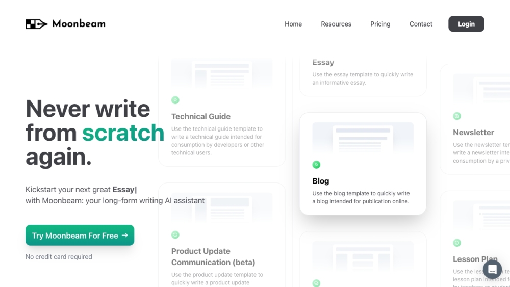 Moonbeam is an AI writing assistant for creating long-form content and improving writing efficiency.