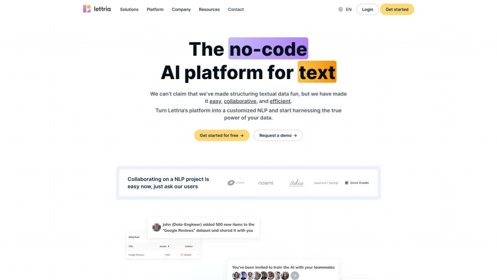 "Lettria is a no-code AI platform that helps users structure and analyze text data effectively."