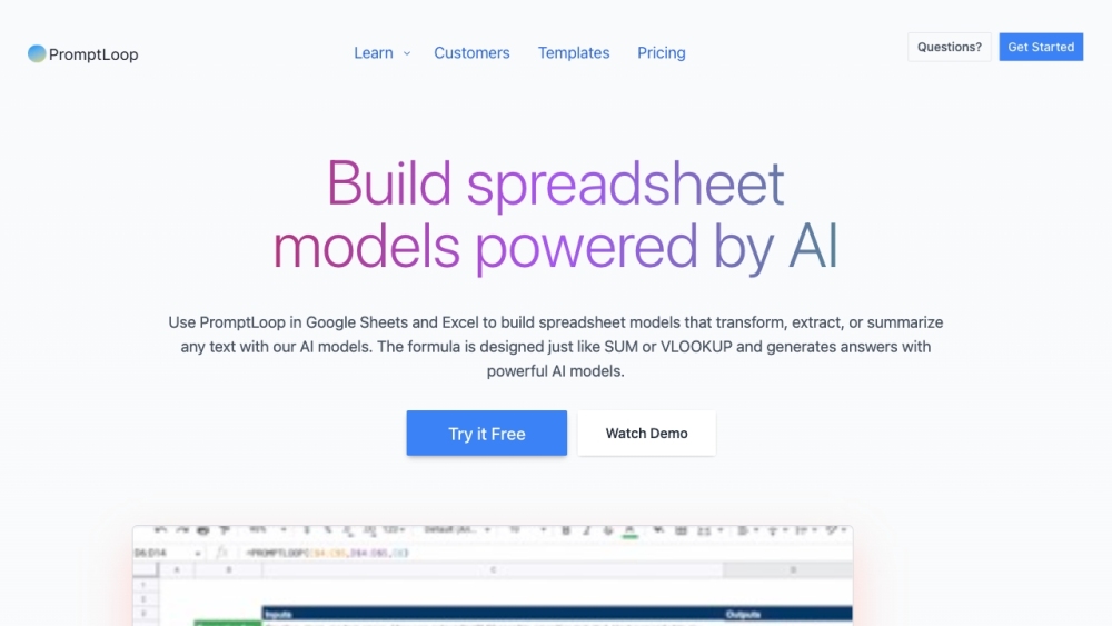 Summary: PromptLoop is a versatile AI tool for data processing and web research in Google Sheets and Excel.