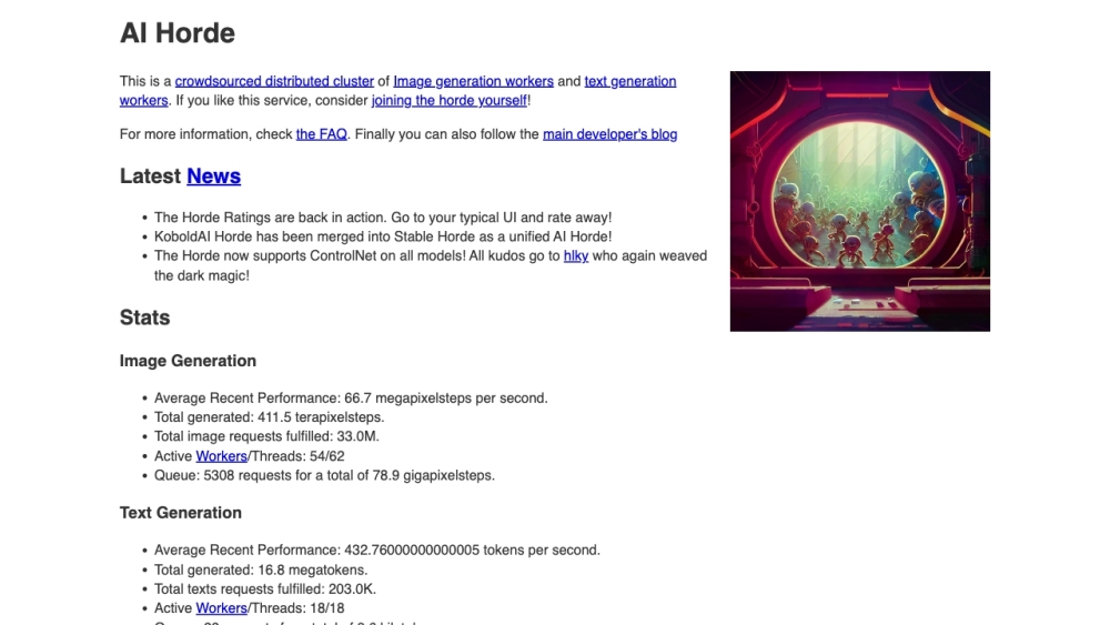 AI Horde is a distributed cluster of workers generating images and text through crowdsourcing.