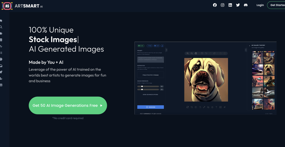 ARTSMART AI uses AI to quickly generate unique and stunning images from art and photorealistic models.