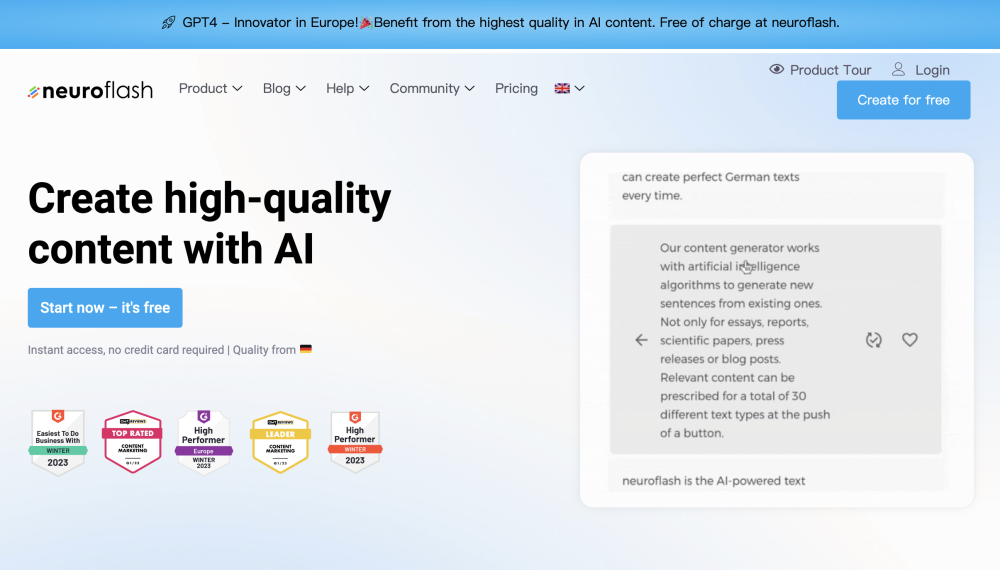 Europe's top AI generator, neuroflash, provides unlimited high-quality content in 7 languages with SEO and plagiarism checks.