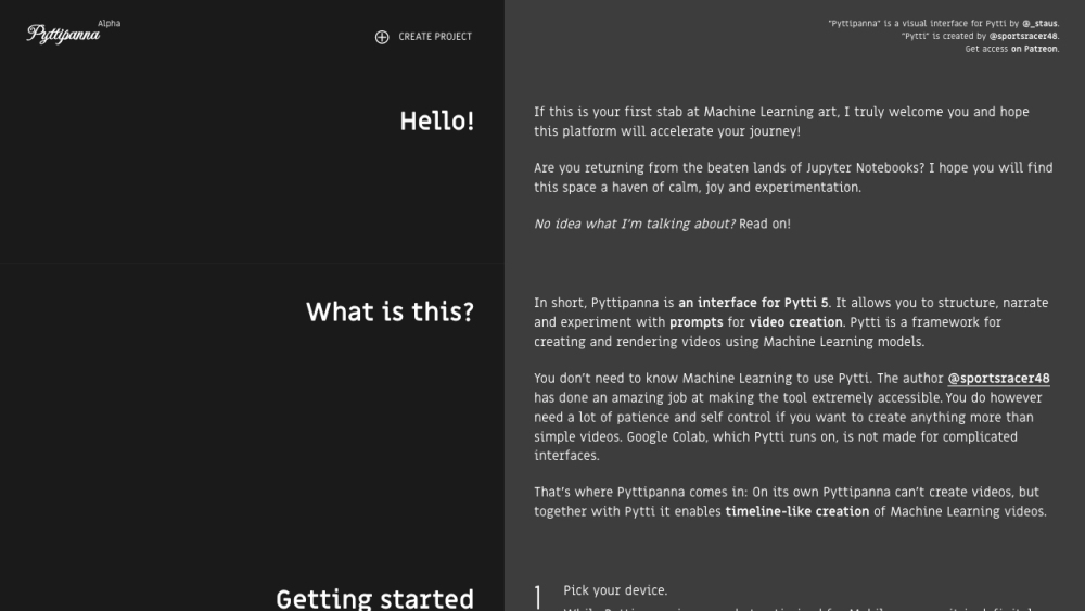 A video creation interface for Pytti 5, enabling structured and narrated video creation using prompts.