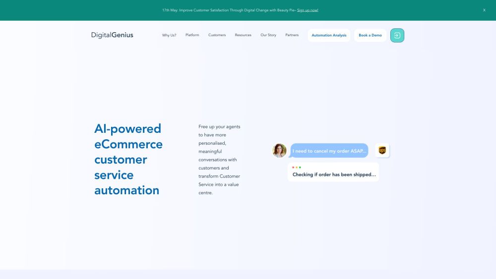 DigitalGenius uses AI to automate customer service and enhance experiences for ecommerce brands.