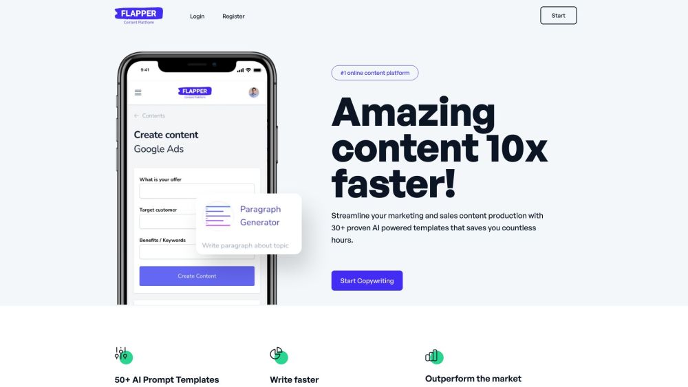 Flapper.ai is an AI platform for sales and marketing professionals, saving time with AI templates.